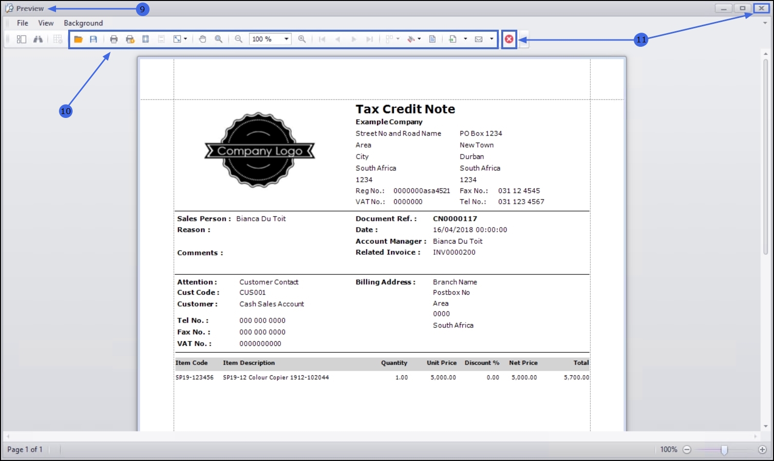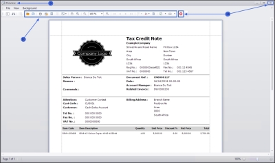 - The Tax Credit Note will display in the Preview screen.