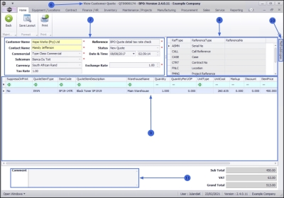 - The Quote Items frame,