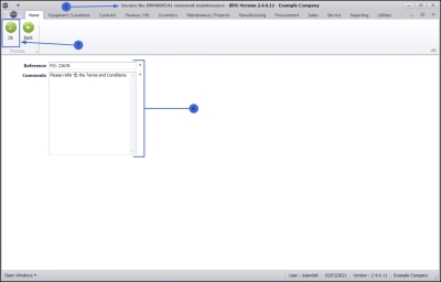 - If a Reference number and comments have already been added for the Invoice, then these fields will be populated.