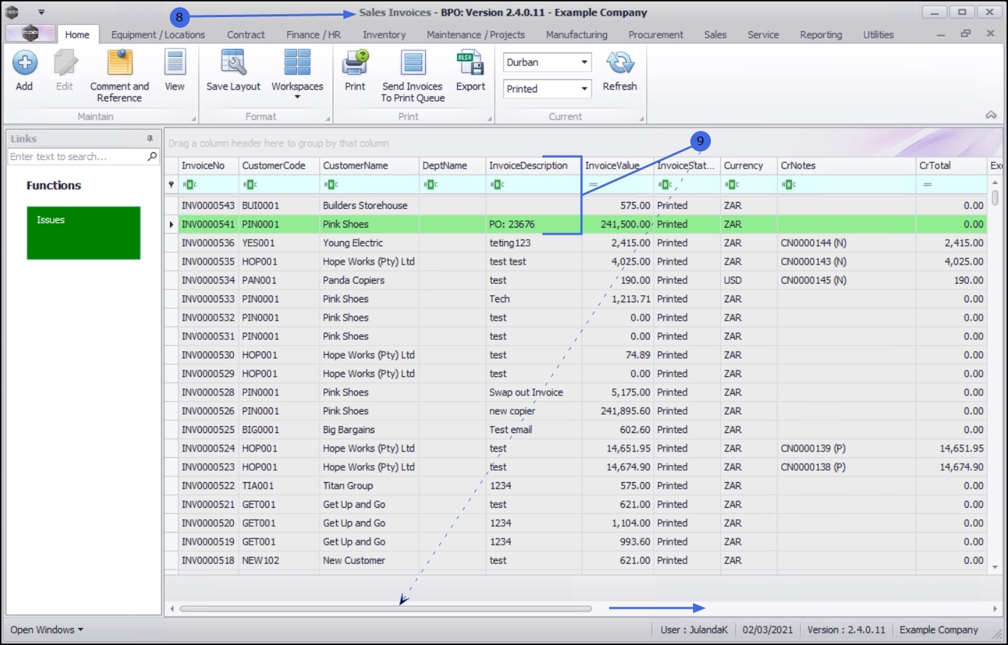 - Navigate to the View Customer Invoice screen to view the changes and / or additions to the Reference and Comments for the Invoice.