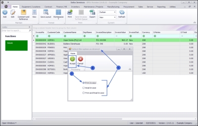 Print Invoice will open the Invoice in the Report Preview to view, print, export or email.