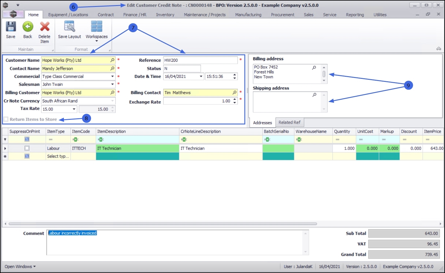 Note that the reference number is a compulsory field and you will not be able to save the Credit Note without a reference number.