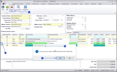 • Are you sure you want to remove this line from the credit note?