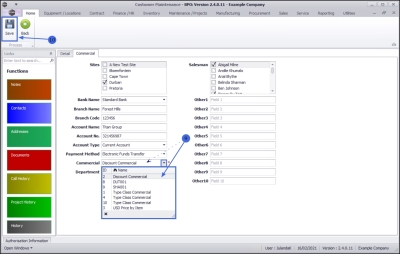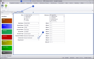 - Click on the Commercial tab to display the commercial details for the Customer.