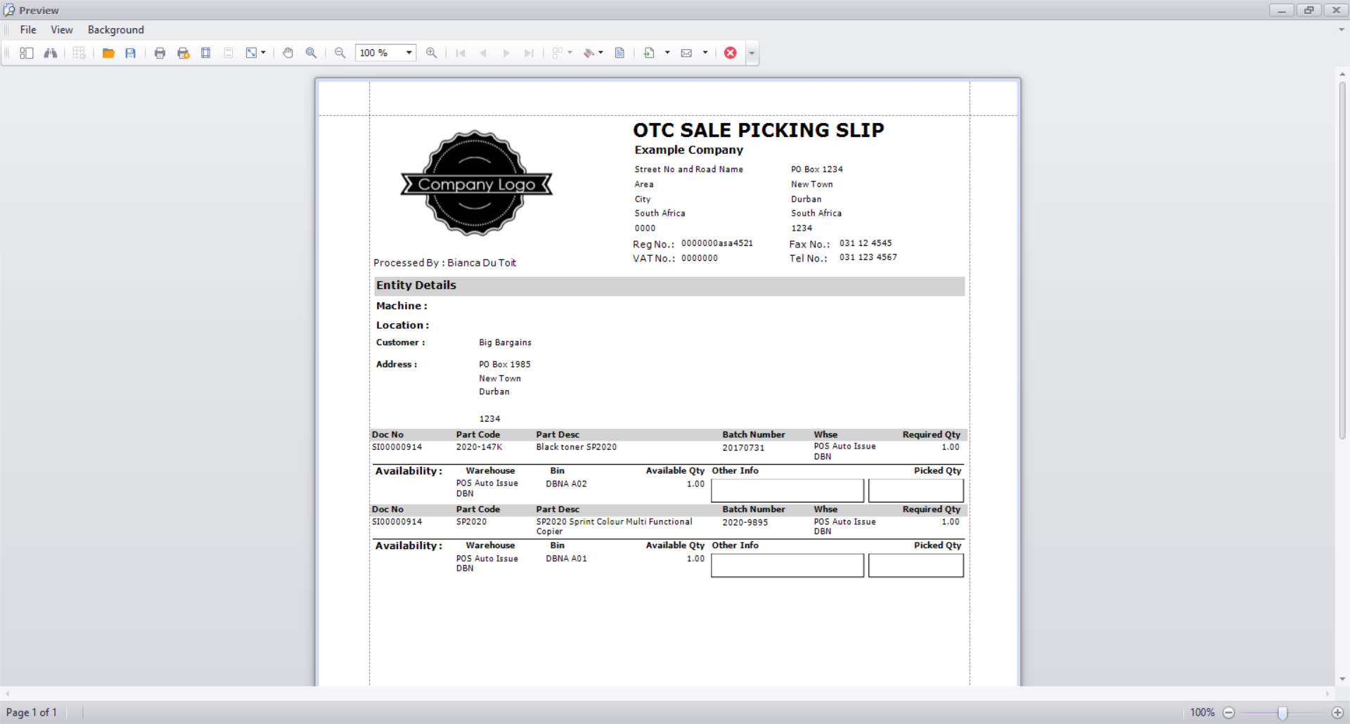 The Tax Invoice for the sale will display in the Preview screen.