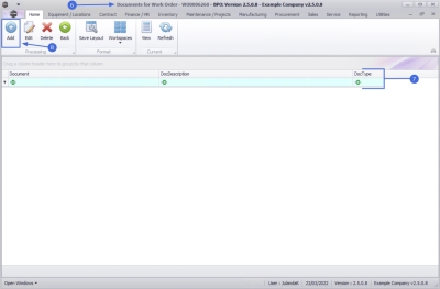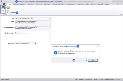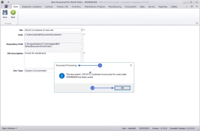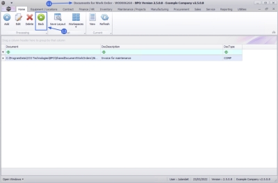 - The Document Maintenance for Work Order : [work order code] screen will display.
