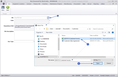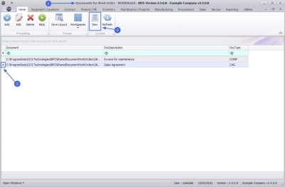 The Documents tile allows you to link, view or delete digital documents to the work order. These documents need to be saved in a shared folder on the server.