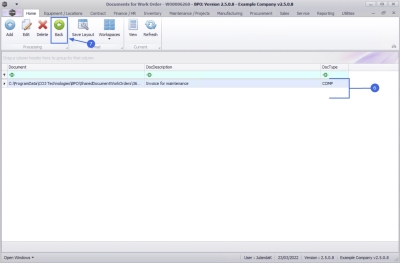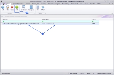 - The Documents for Work Order - [work order code] screen will be displayed.