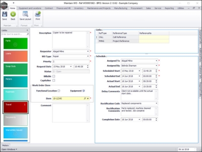 Travel time can be logged against the work order via the My Work screen.