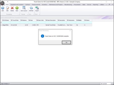 - An Travel Processing message box will pop up informing you that;