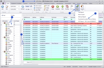 - Click on the row of the call you wish to print the functional location service history report for.