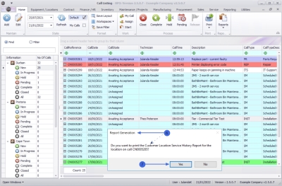 - Do you want to print the Customer Location Service History Report for the location on call [call ref number]?