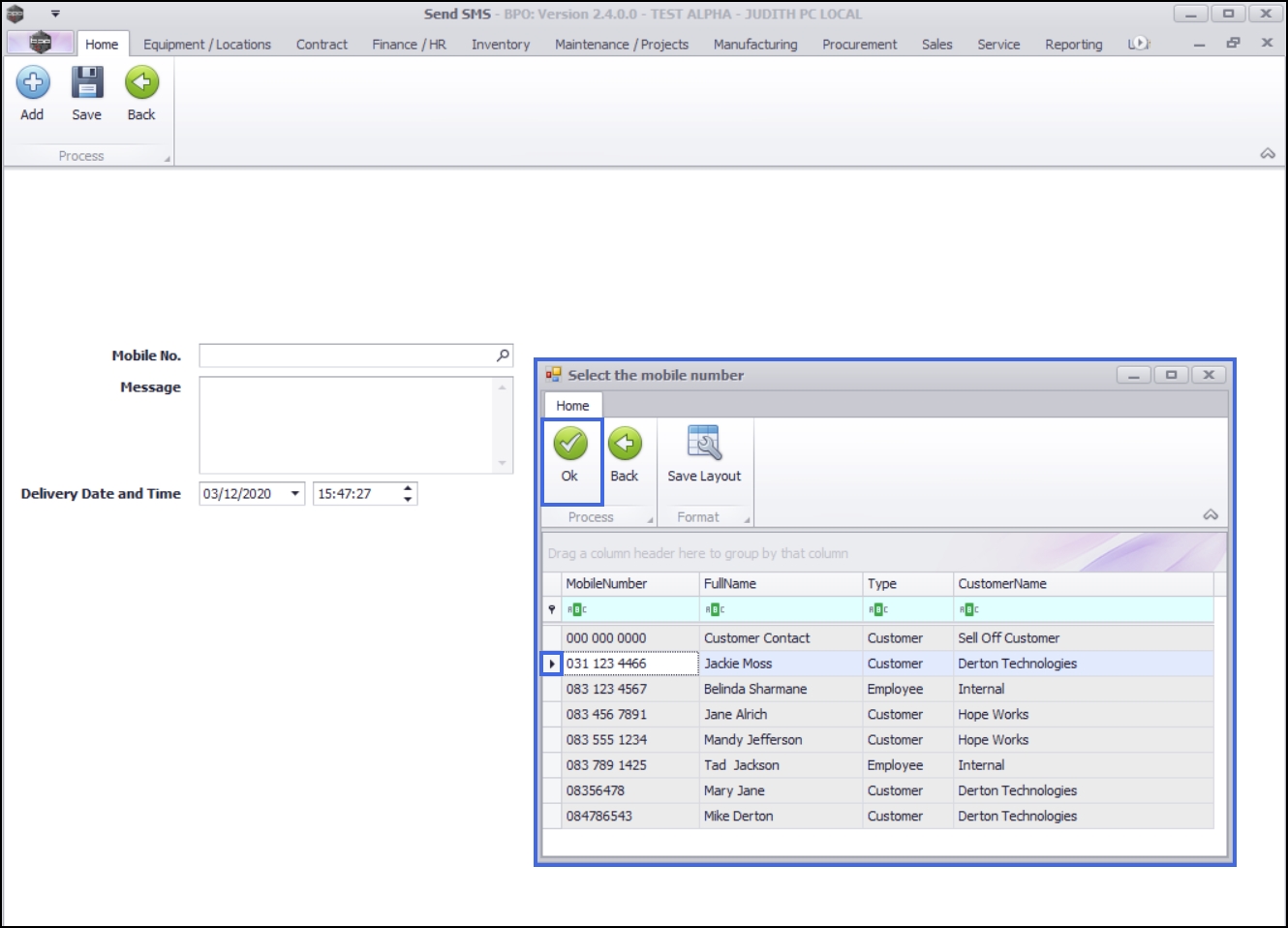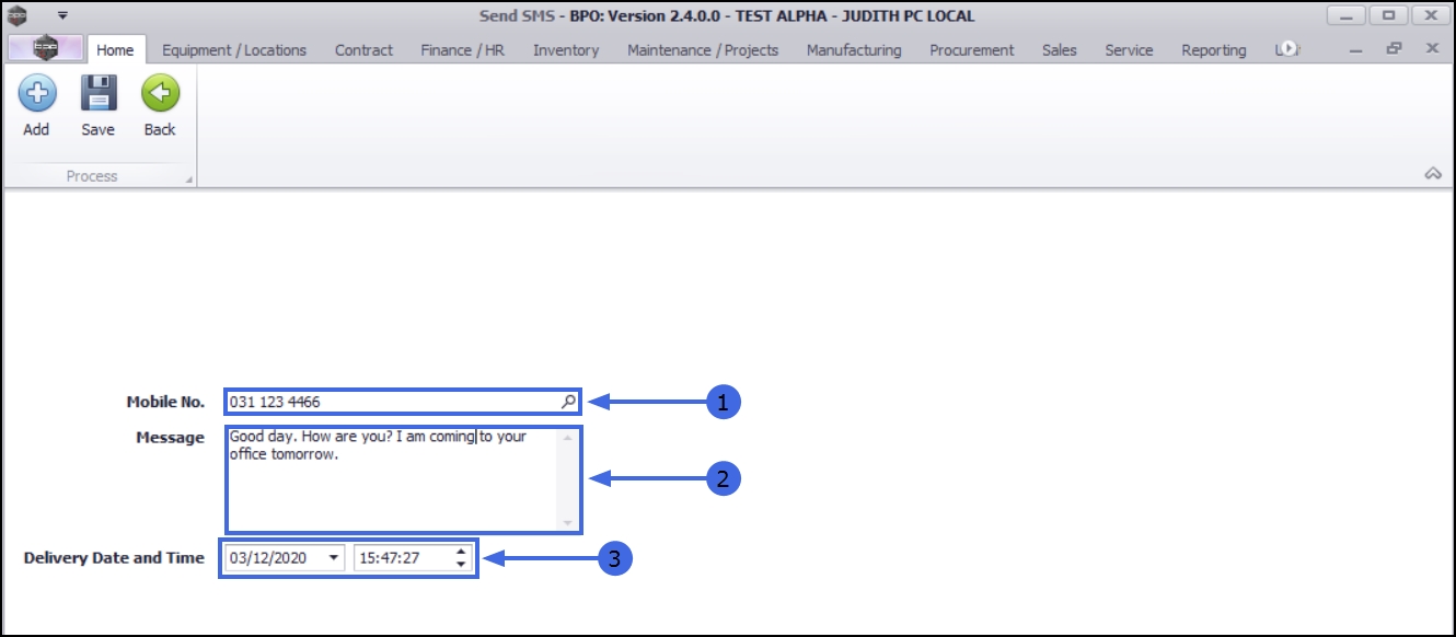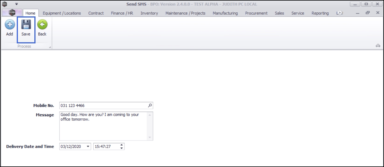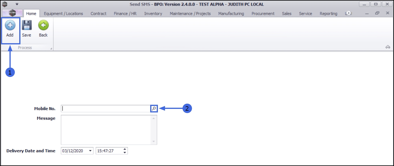 - The Delivery Date and Time will auto populate with the current date and time. You can click on the arrows and change the date and time if required.