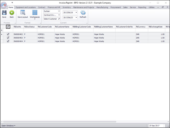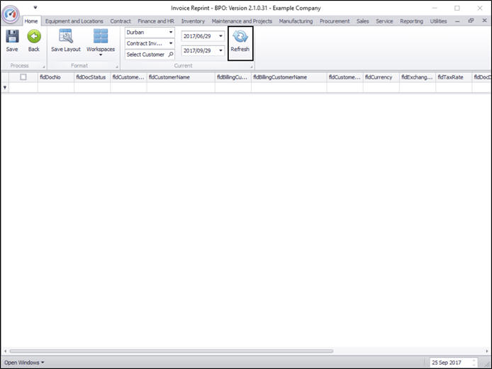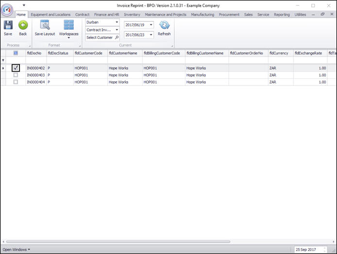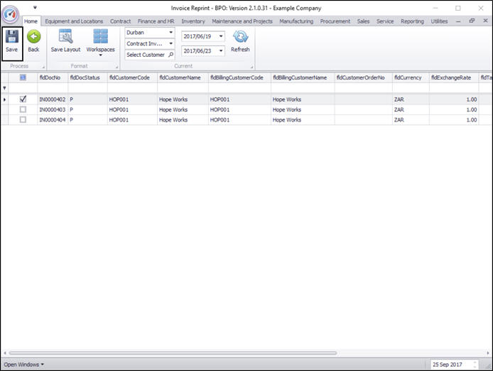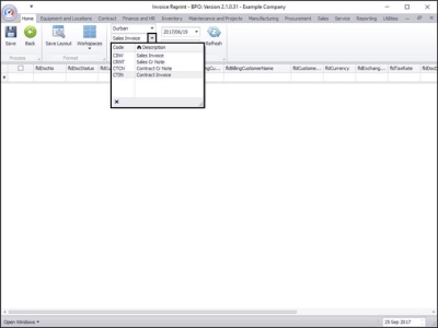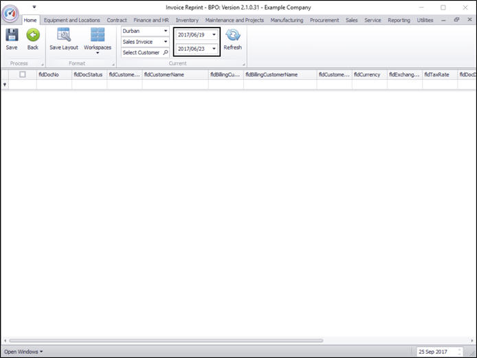 The Invoice Reprint screen will be displayed.