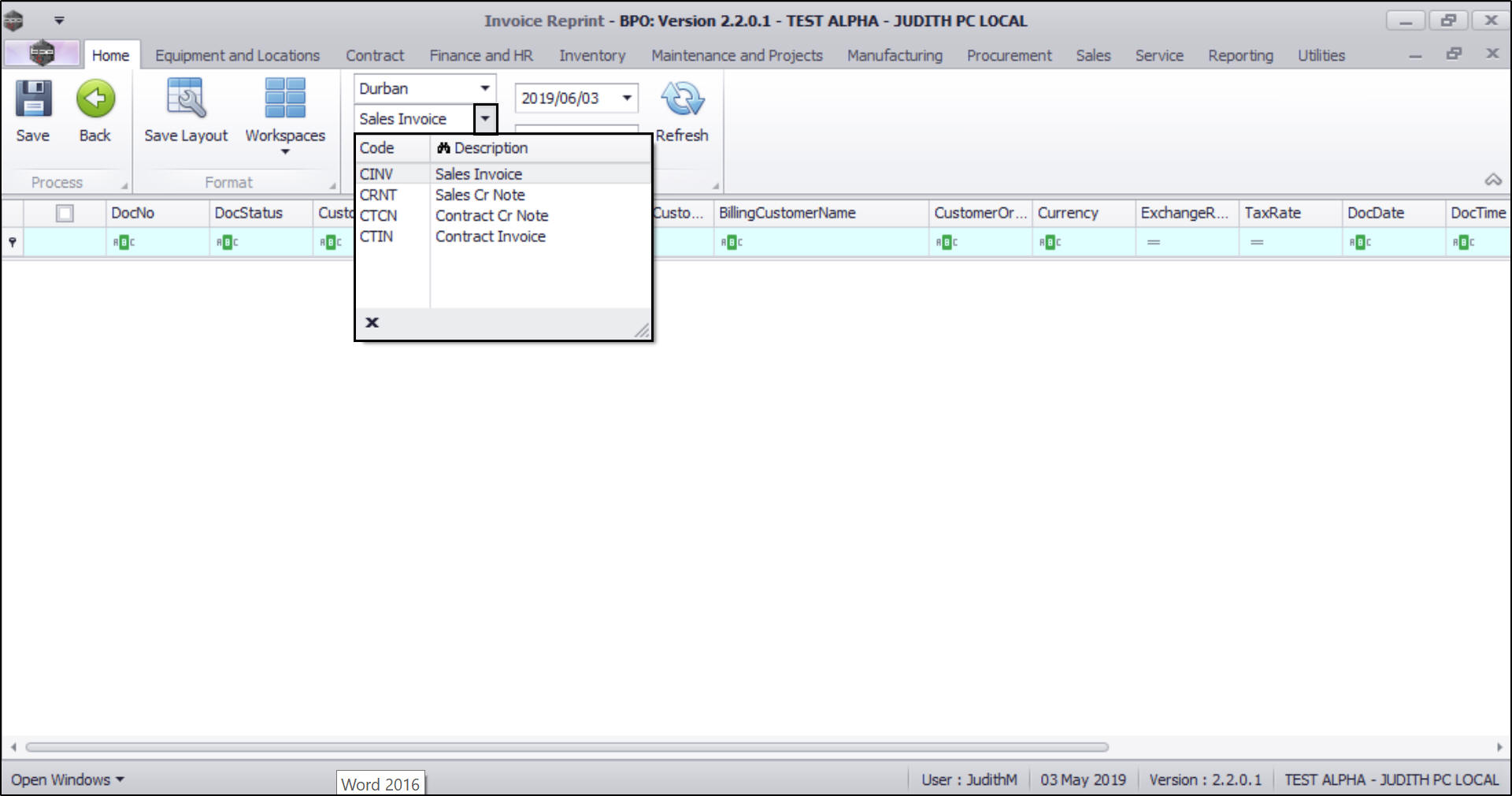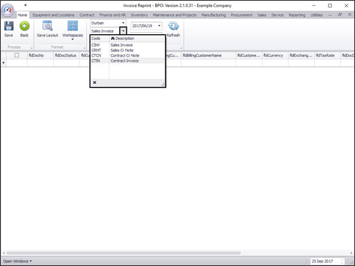 - In this image, Contract Invoice has been selected.