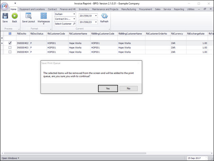 - The selected items will be removed from the screen and will be added to the print queue, are you sure you wish to continue?