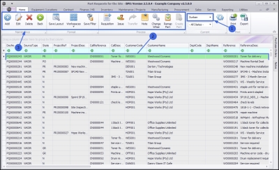- In the Part Requests for the Site screen, note that the Site filter is set to a named Site (Example 3 above).