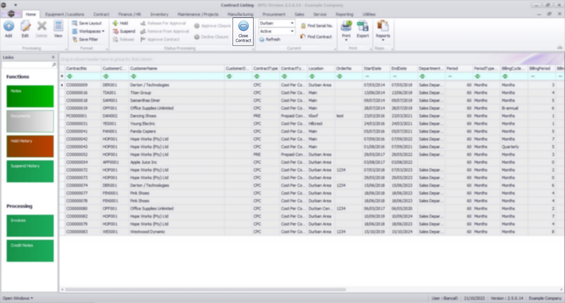 - Select the row of the contract that you wish to process.
