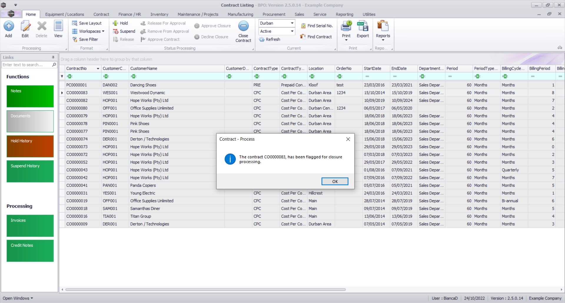 A Contract - Process message box will display, informing you that:
