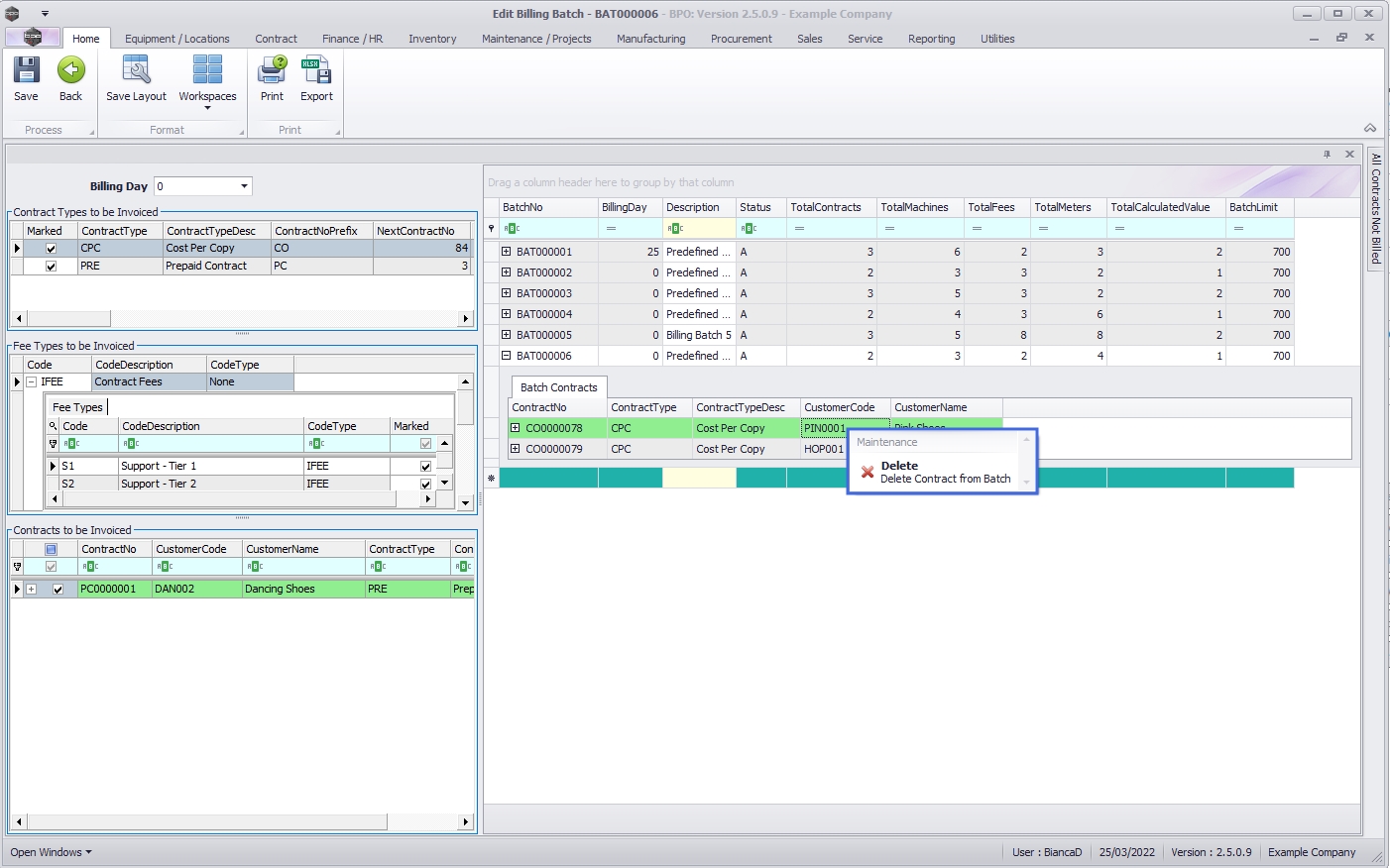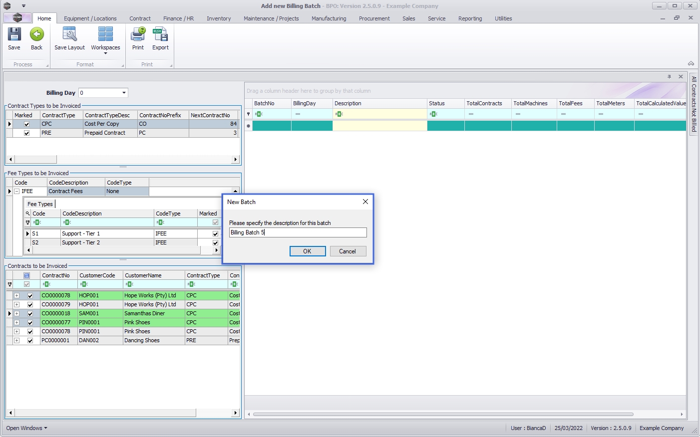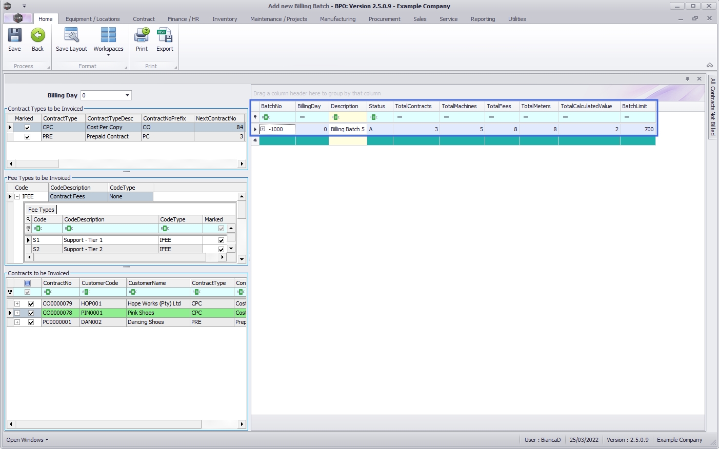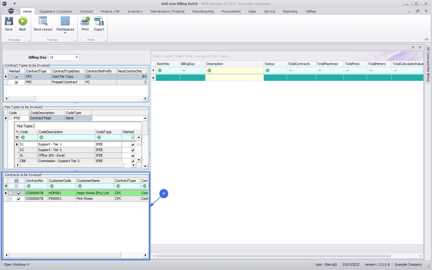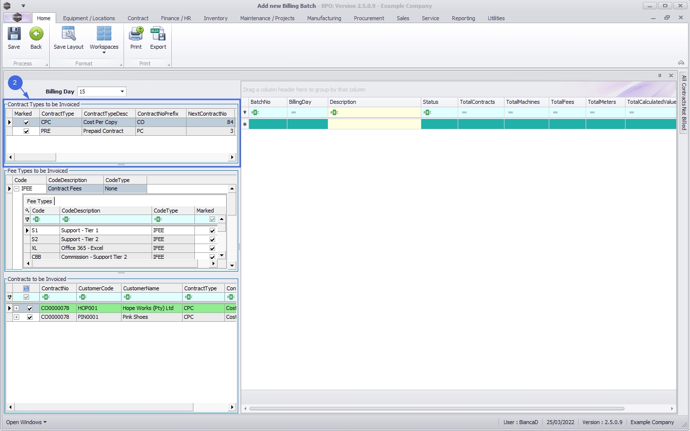 - Select the Contracts to be Invoiced within the Predefined Billing Batch.