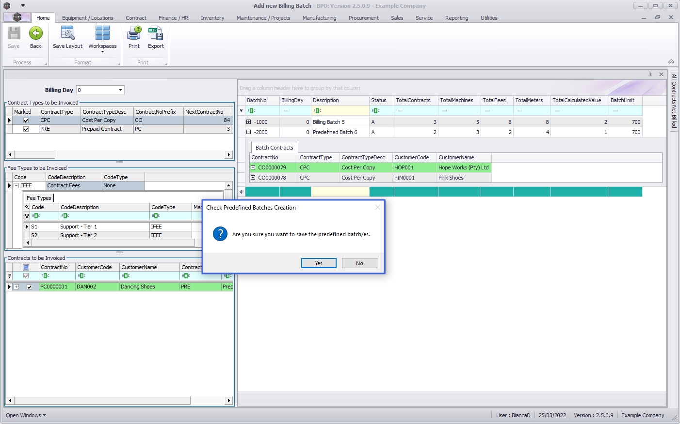- A message box will come up, asking: "Are you sure you want to save the predefined batch/es?".