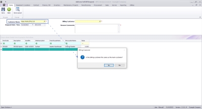 - A message box will come up asking: Is the billing customer the same as the main customer?