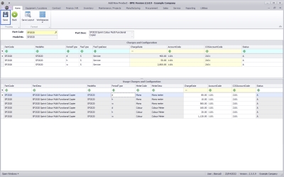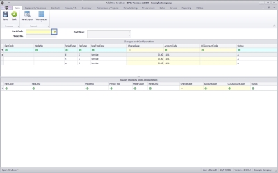 - The Usage Charges and Configuration frame will auto populate with the usage charge description details linked to the selected part if applicable.