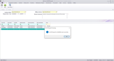 The Sell Off Request Processing message box will come up noting: Sell Off Request No [sell off request number] saved successfully.