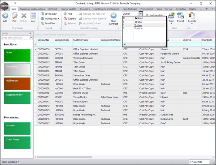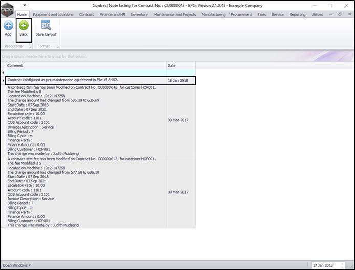 - You will return to the Contract Note Listing for Contract No.: screen.
