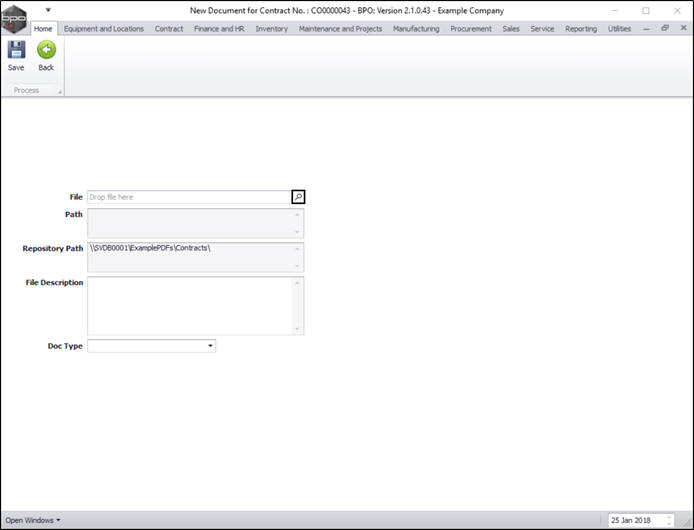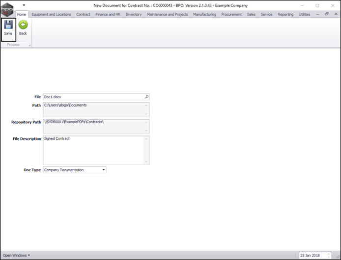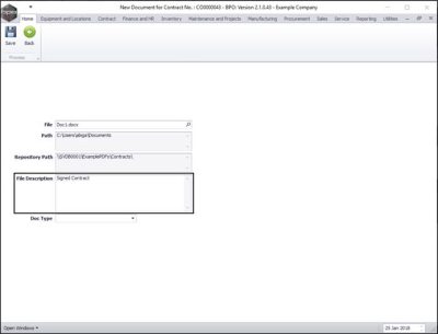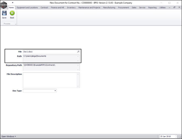 - The Repository Path is auto populated according to the path that has been set up in the company configuration.