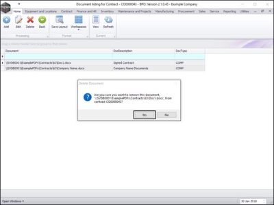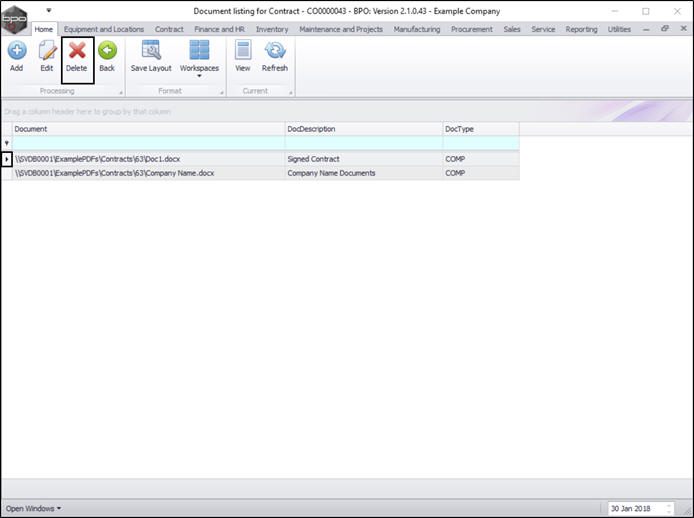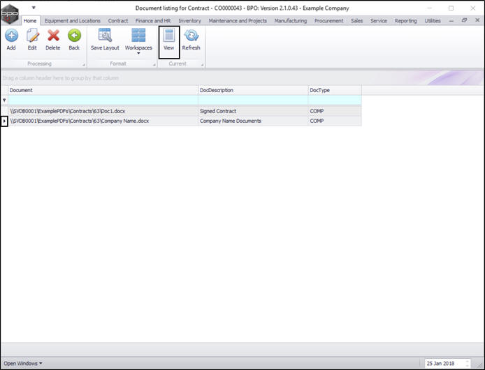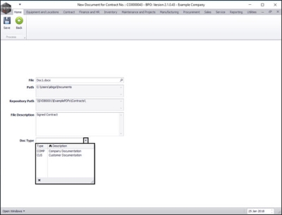 - You can now see the selected document has been added to the Document listing for Contract - [] screen.