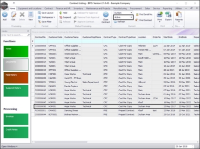- Upon opening, this screen will default to the Active status, listing all the Active contracts for the selected site.