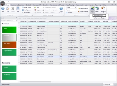 The Contract Report shows a brief overview of information pertaining to a particular contract e.g., the contract customer and billing information, information regarding the items and any item fees linked to the contract.