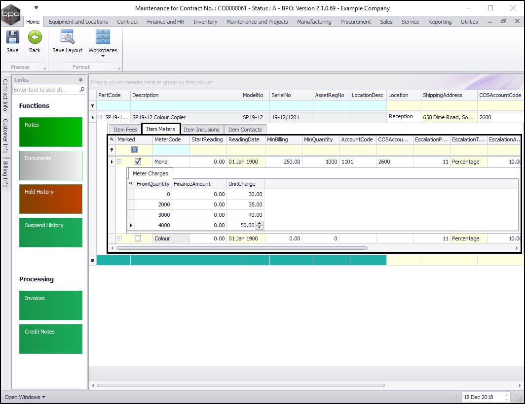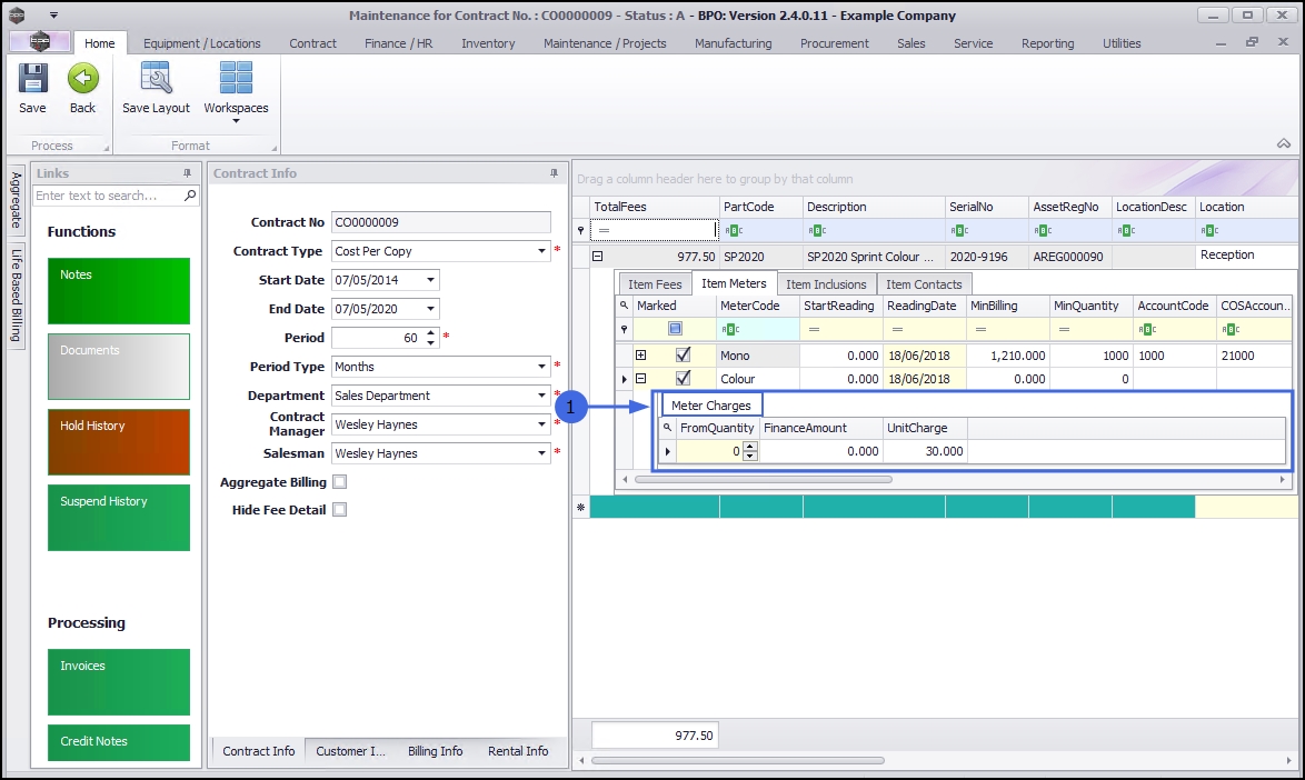 Minimum billing is an agreed cost between Company and Customer which the company will charge to ensure they can provide for a minimum quality of service and support at all times. Meter charge set up on a contract allows for a specific amount of copies within a set time frame. Monitoring the subsequent meter readings can help keep track of potential over or under usage and adjust the contract accordingly, to better suit the needs of the customer.
