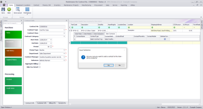 - The contract will be saved and you will return to the Contract Listing screen where the status defaults to Active, or will be set to the Status you last selected.