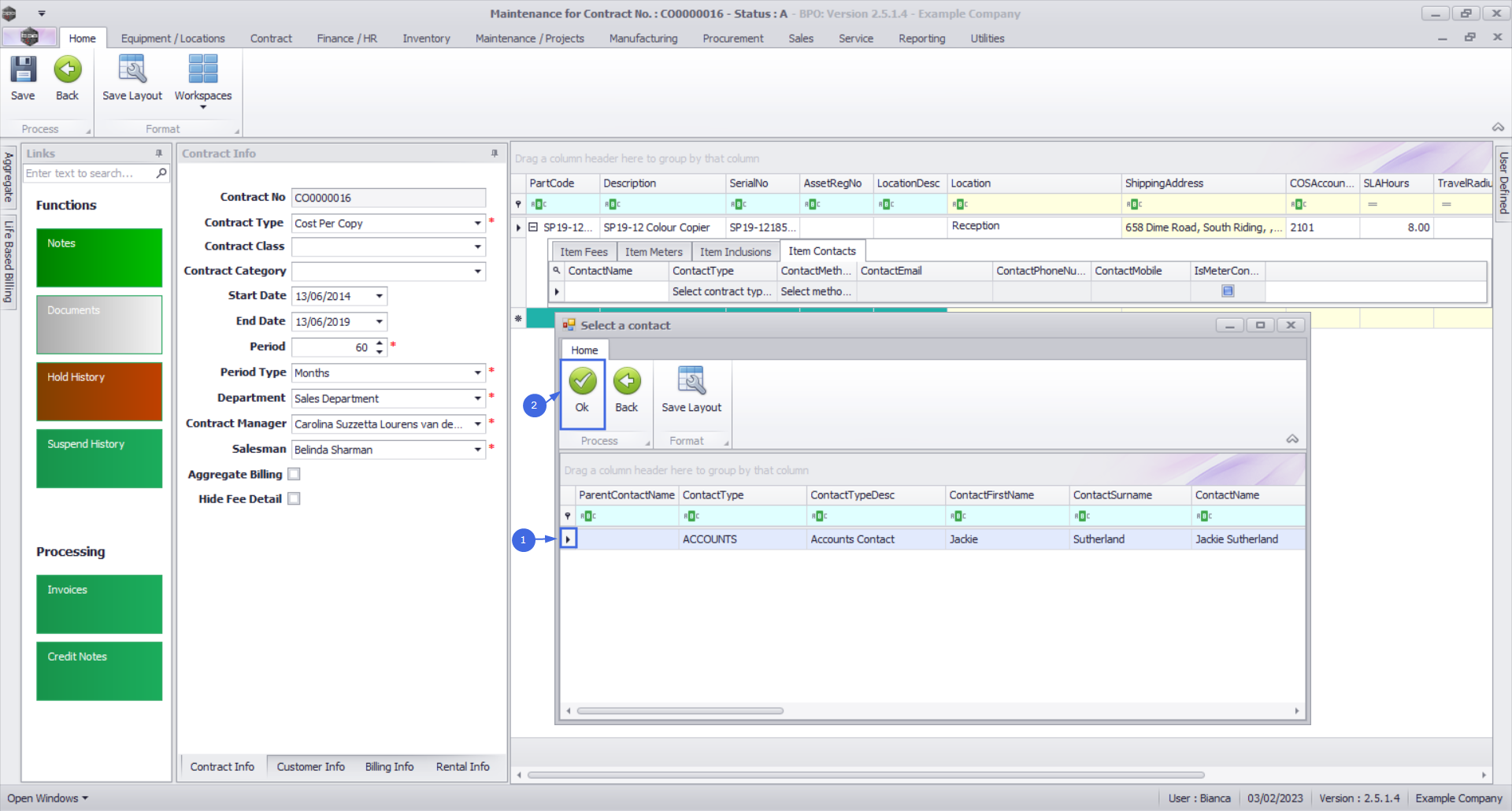 - Ensure you have the contract item selected and then click on the Item Contacts tab.