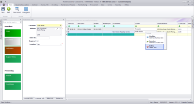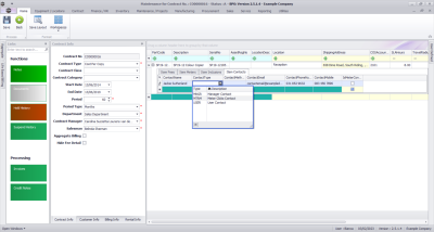 - Right click in the row of the contract item you wish to delete.