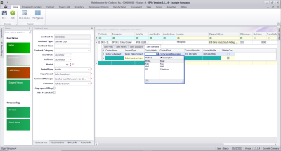 - Period: This will auto populate when the Contract Type is selected but you can either type in or use the arrow indicators to select an alternative period (life span of the contract).