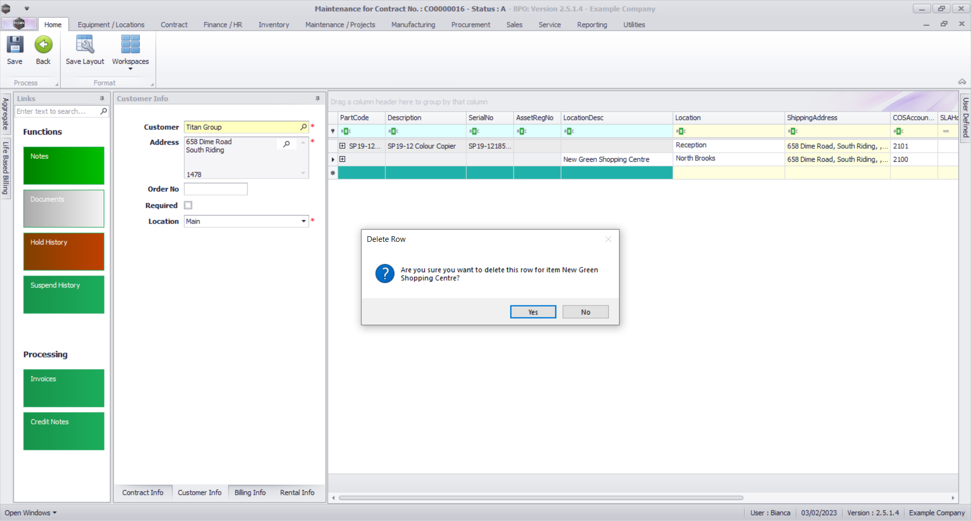 - The contract item has now been deleted from the Contract Parts frame.
