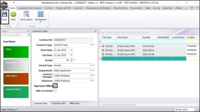 - Click on the Contract Info tab and check whether the Aggregate Billing flag is selected.