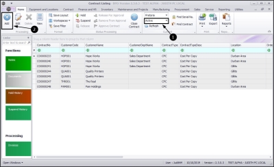 - The new contract will be saved, and you will return to the Contract Listing screen where the status defaults to Active.