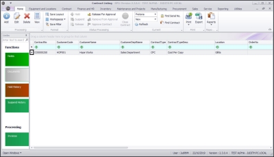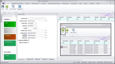 - Serial No: 2020-00024 - The colour meter is selected with no Minimum Billing and a Copy Charge of 15c set up. For more information, creating a new contract manual.