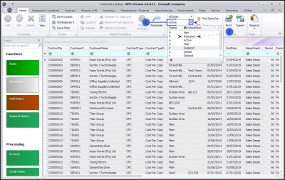 - Select the row of the contract where you wish to view the linked Credit Notes.
