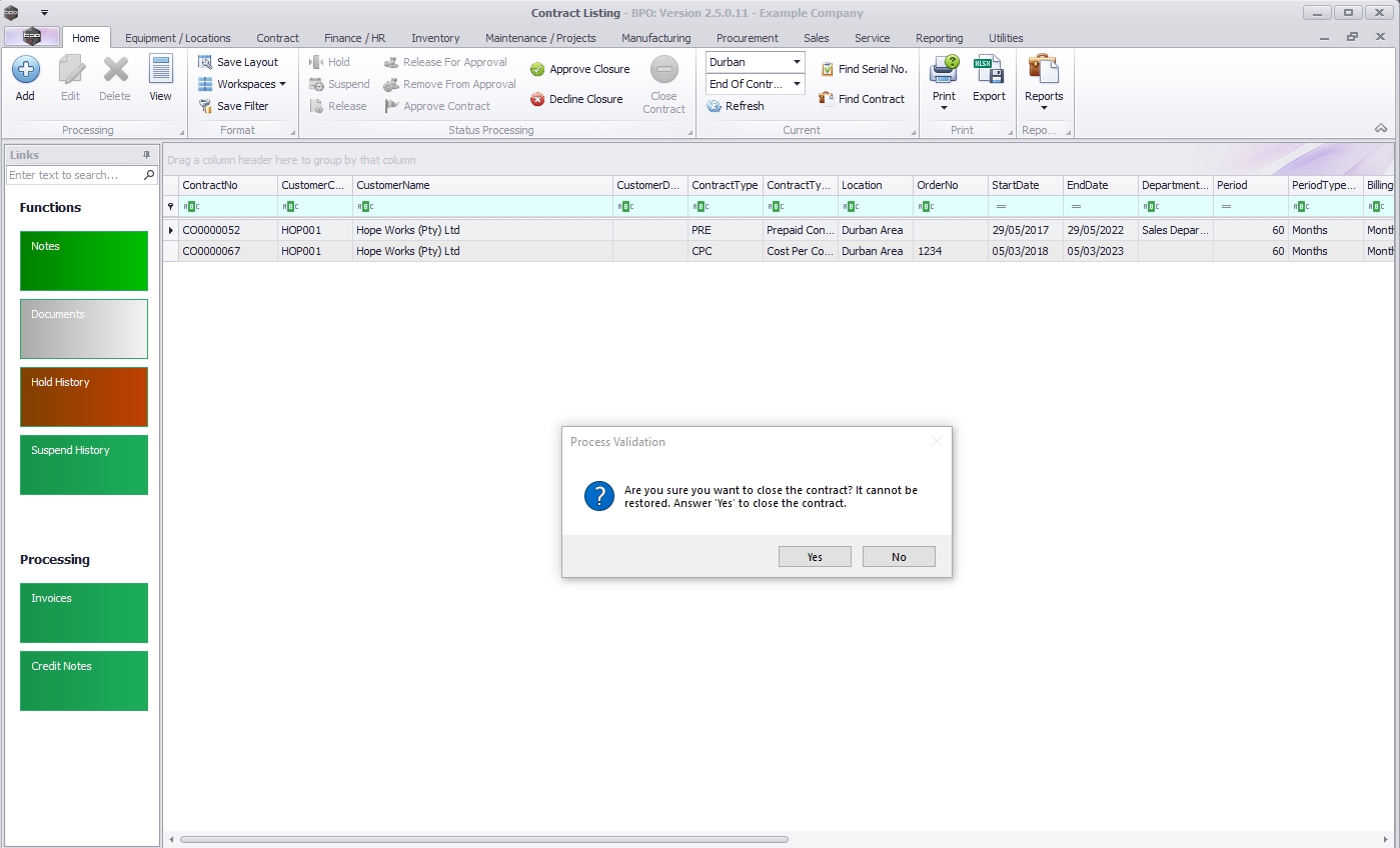 Are you sure you want to close the contract? It cannot be restored. Answer 'Yes' to close the Contract.