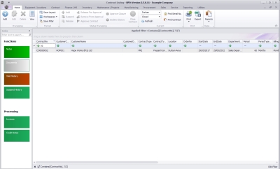 Upon opening, this screen will default to the Active status, listing all the Active contracts for the selected site.