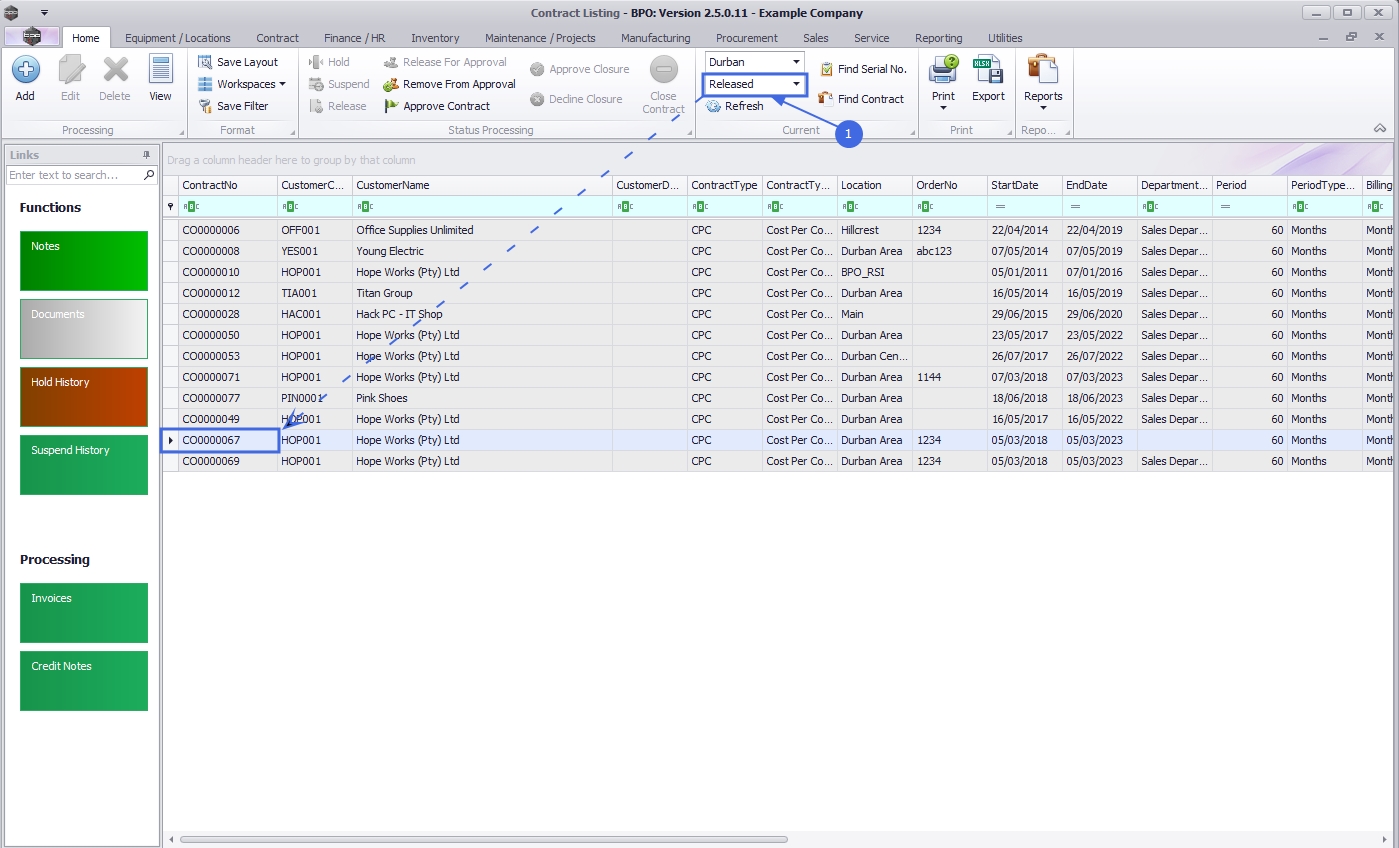 The Contract Listing screen will be displayed.
