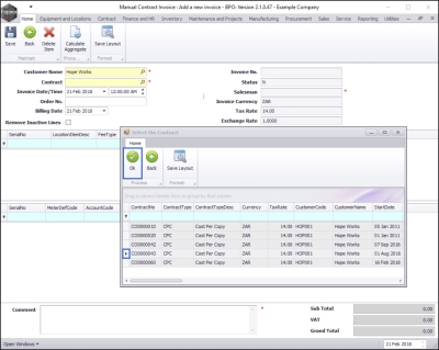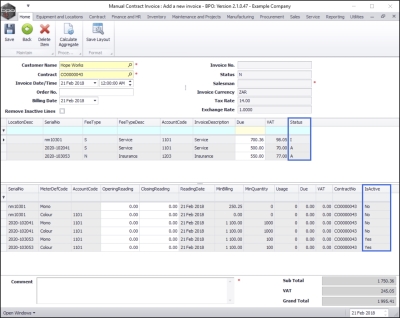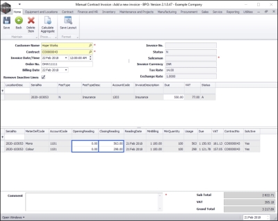 Using a Manual Contract Invoice to bill any one machine on a contract for either fees or meters or both within the current billing period, will prevent a contract invoice from being raised at month end for that contract – for either fees, meters or both.