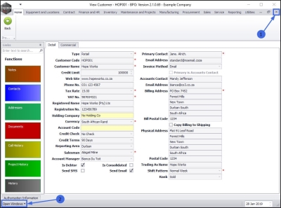- Click on the row selector in front of the customer you wish to view.