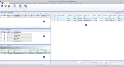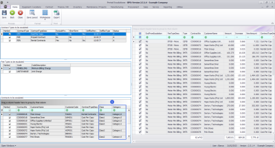- Contract Items Charges frame: where contract items that meet the requirements selected in frames 1, 2 and 3 are displayed.