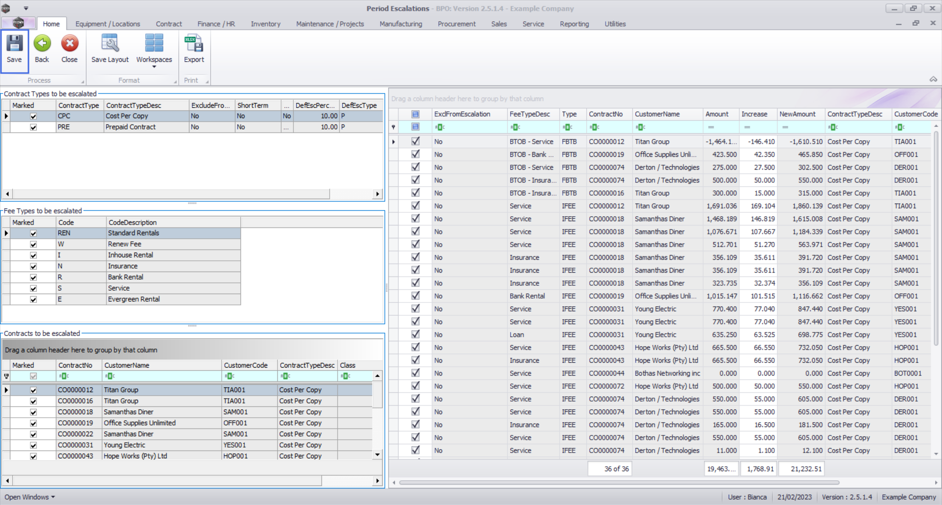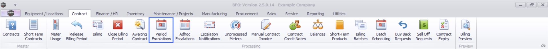 Ribbon Select Contract > Period Escalations